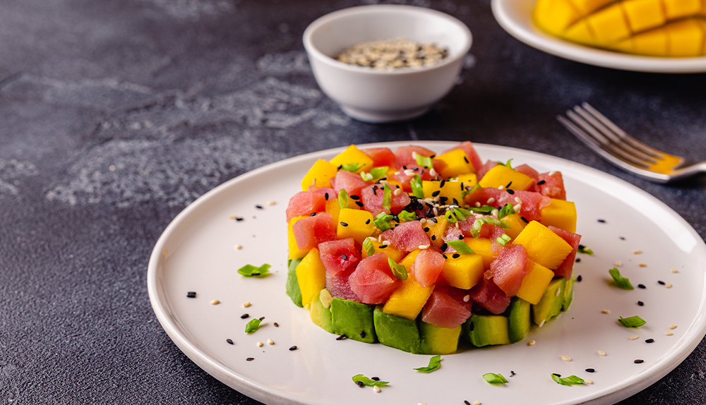 Tartar de atún, aguacate y mango
